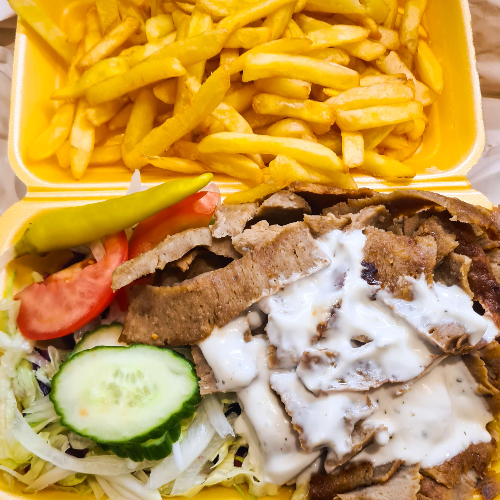£4.49ADDSliced doner meat on chips with fruit shoot -