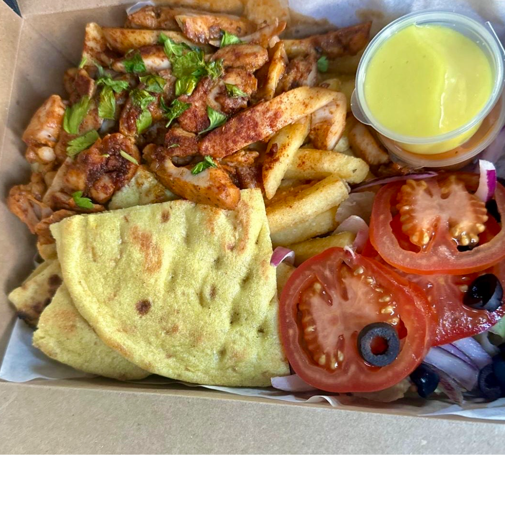 £7.99ADDChicken doner meat served with chips, salad, and sauce dip